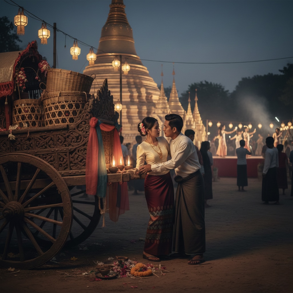 ” ရွှီးးးးး …… ဖေါင်းးးး ဖေါင်းးးးးး …… ရွှီးးးးး …… ဖေါင်းးးးး ……… ဒိုင်းးး ……… ရွှီးးးး …… ဖေါင်းးးး …… ဒိုင်းးးးး ” သွယ် တို့ မြို့လေးရဲ့ သီတင်းကျွတ် ညလေးပေါ့။ တရပ် ကွက်လုံး မီးတွေ လင်းထိန်နေတာ။ ကလေးတွေလည်း ဖျောက်အိုး ဖေါက်လိုက် မီးရှူးမီးပန်းတွေ လွတ်လိုက် ပျော်ရွှင် နေကြတယ်။ ” မသွယ် ရေ …… ပြီးပြီလား ” ” ဟုတ် …… မမခိုင် ” ဘေးအိမ်က မမခိုင်တို့ လင်မယားနဲ့ ပွဲသွား ကြည့်မလို့ အရင်ရက်က ပြောထားကြတာ။ မမခိုင် နာမည်က မိုးမိုးခိုင်
