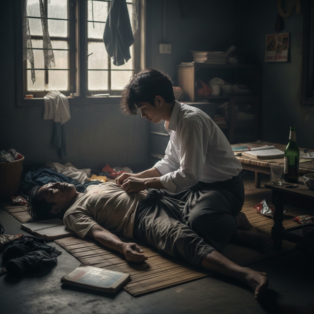 သီဟ ပထမဆုံး တက္ကသိုလ် စတက်တဲ့နေ့မှာပဲ သီဟနေရမဲ့ အဆောင် မှူး ဆရာကြီးက ဂရုစိုက်ပြီး အကုန်လုပ်ပေးပါတယ် ။ သူကတော့ ဆရာကြီးက တပည့်တွေကို ဂရုစိုက်တယ်လို့ပဲထင်နေခဲ့တယ် ။ အဆောင်မှူးဆရာကြီးက အသက်၂၈လောက်သာ ရှိသေးတယ် ။ အသားဖြူဖြူ ရုပ်ချောချော လူပျိူလူလွတ်တစ်ယောက်ဖြစ်သည် ။ အဲ..လူလွတ်တော့ဟုတ်တယ် လူပျိုမဟုတ်ပါ ။ စားပီးသောက်ပြီး စားပီးသားဝါးပီးသား ရေဆေးငါး ဆရာကြီးဖြစ်တယ် ။ အခုလဲ..ပထမနှစ်စတက်ခါစ ခပ်ချောချော ကျောင်းသားလေးသီဟကို..ဂရုစိုက်ပြနေတယ် ။ သီဟ နေရတဲ့အခန်းမွာ တစ်ခြားကျောင်းသားနှစ်ယောက်ရှိသေးတယ် ။ တစ်ခန်းကို သုံးယောက်နေရတယ် ။ သီဟက ပထမနှစ် ကျန်တဲ့ နှစ်ယောက်က ဒုတိယနှစ် အကိုတွေပါ ။ စိုင်းနောင် နဲ့ ရမည်းသင်းဘက်က သူရ တို့ဖြစ်တယ်